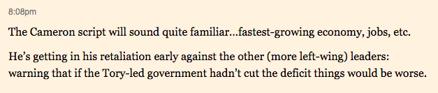 A good liveblog always sums up at the end. This is typically done with bullet points, some of which link to articles written during the debate itself or prepared in advance.