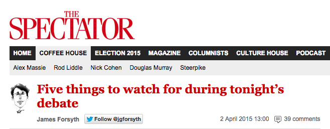 The Spectator, for example, had written about Five things to watch for during tonight’s debate.