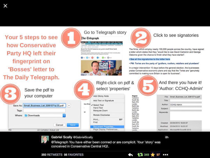 But metadata on the letter showed that it originated from Conservative Central HQ: