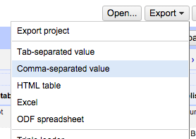 Once the project is created you don’t need to do anything else: click Export in the top right corner and choose CSV or XLS.