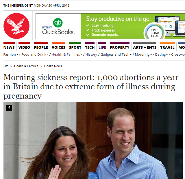 - Morning sickness report: 1,000 abortions a year in Britain due to extreme form of illness during pregnancy