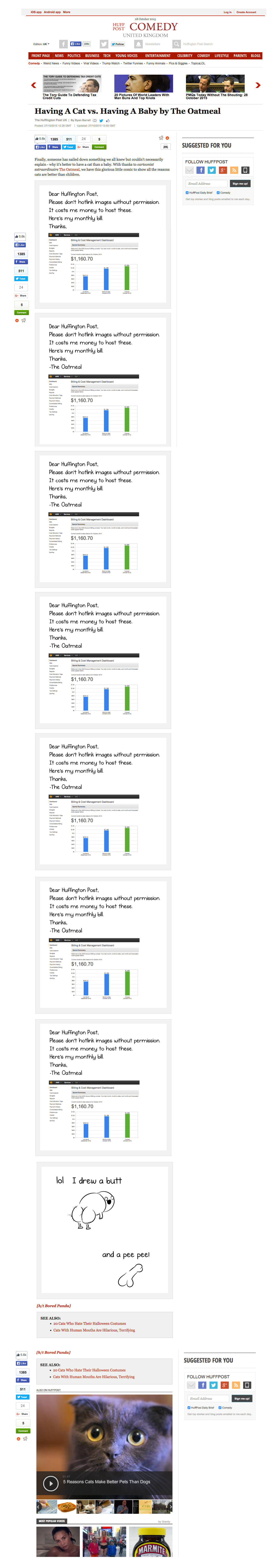 Barbara Maseda points me to the example of The Oatmeal’s reaction to having its cartoons used without permission by the Huffington Post (original post since changed with an apology):