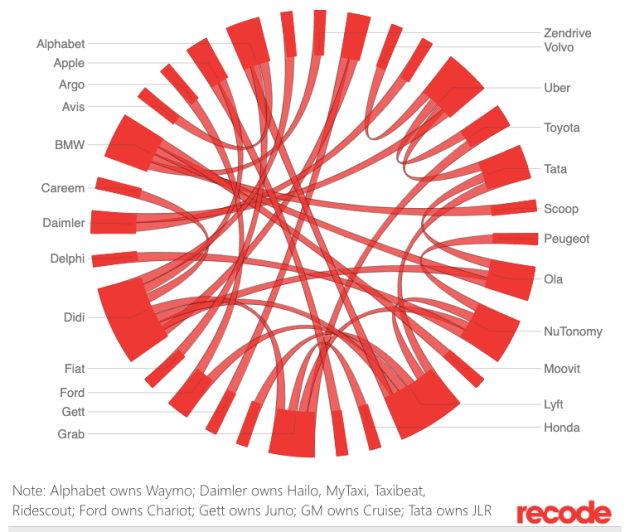 This chord diagram shows connections between different companies in a sector (view original article to see interactive version)