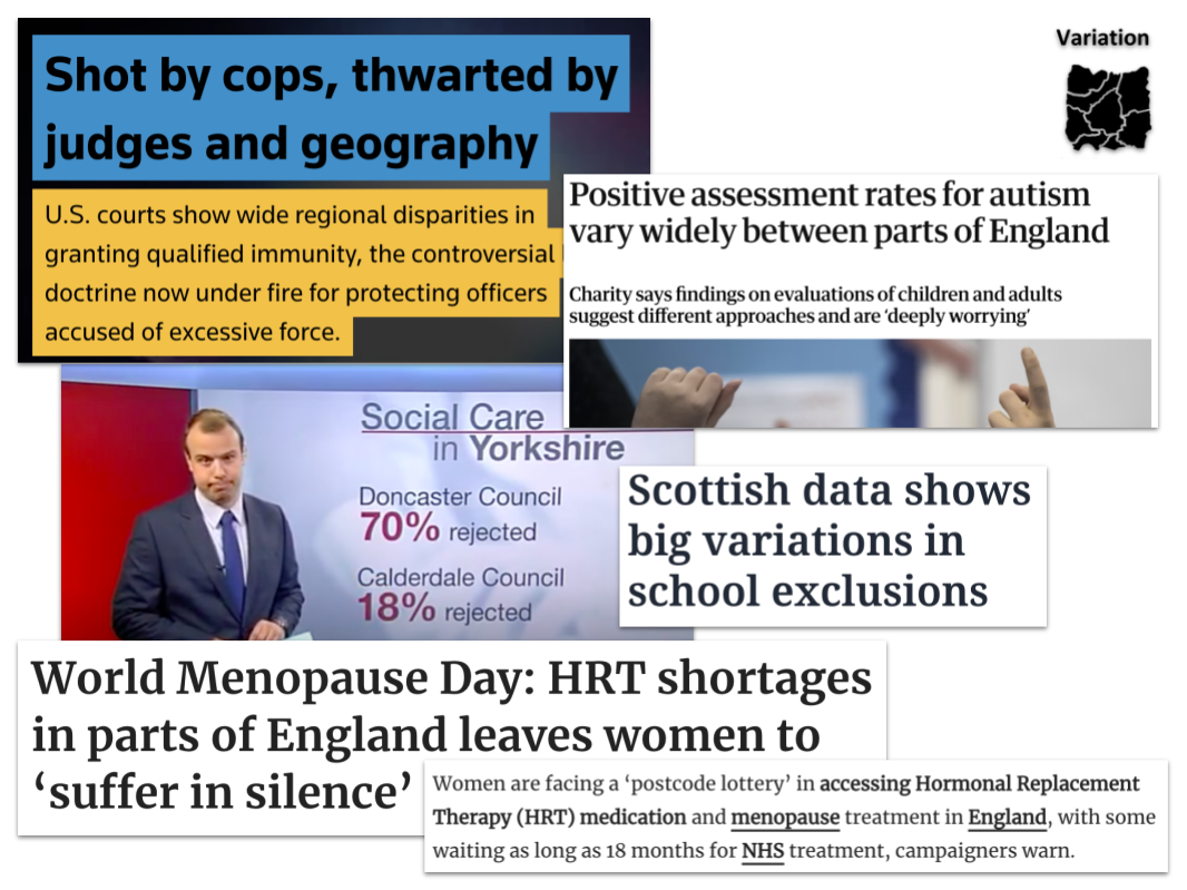 Data angle 4: Variation — “postcode lotteries”, maps and distributions
