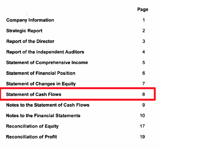 The key thing with the cash flow statement is that it’s a table – and it should show not only the latest year’s figures, but also the figures for the year before.
