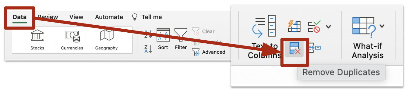Both Excel and Google Sheets have built-in tools for detecting duplicate rows or values. Excel’s formatting button will highlight duplicates if you want to deal with them individually, or you can use its Remove Duplicates button on the Data panel to remove duplicate rows.