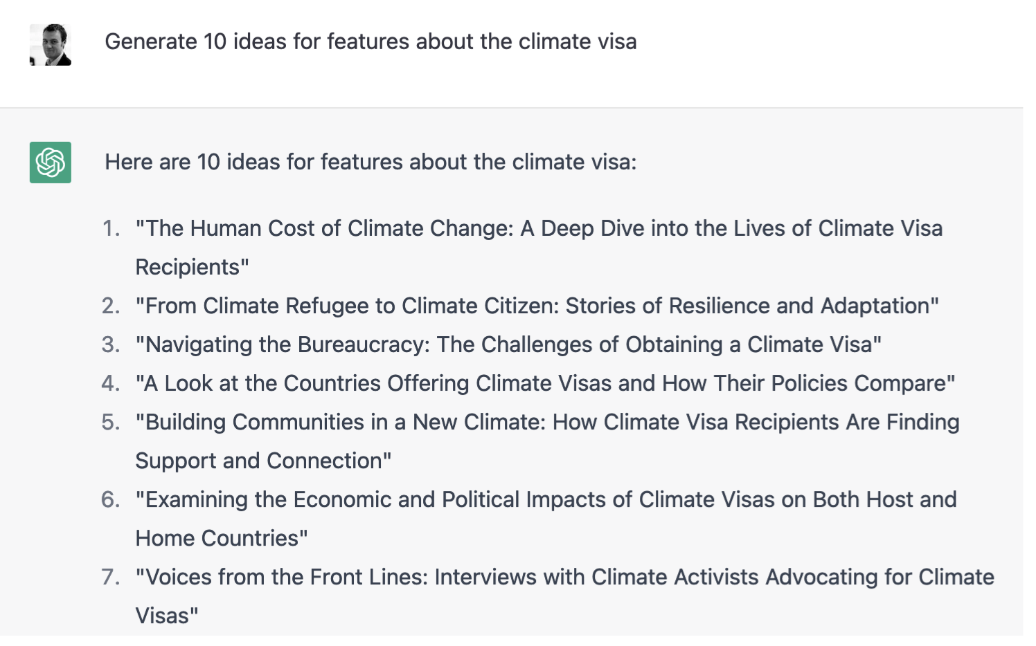 Just as ChatGPT can provide a fresh perspective on our writing, it can also provide different ideas on story angles and sources.