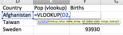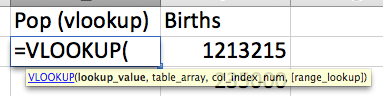Call this column ‘Pop (vlookup)’.