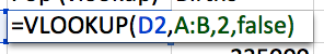 =VLOOKUP(D2,A:B,