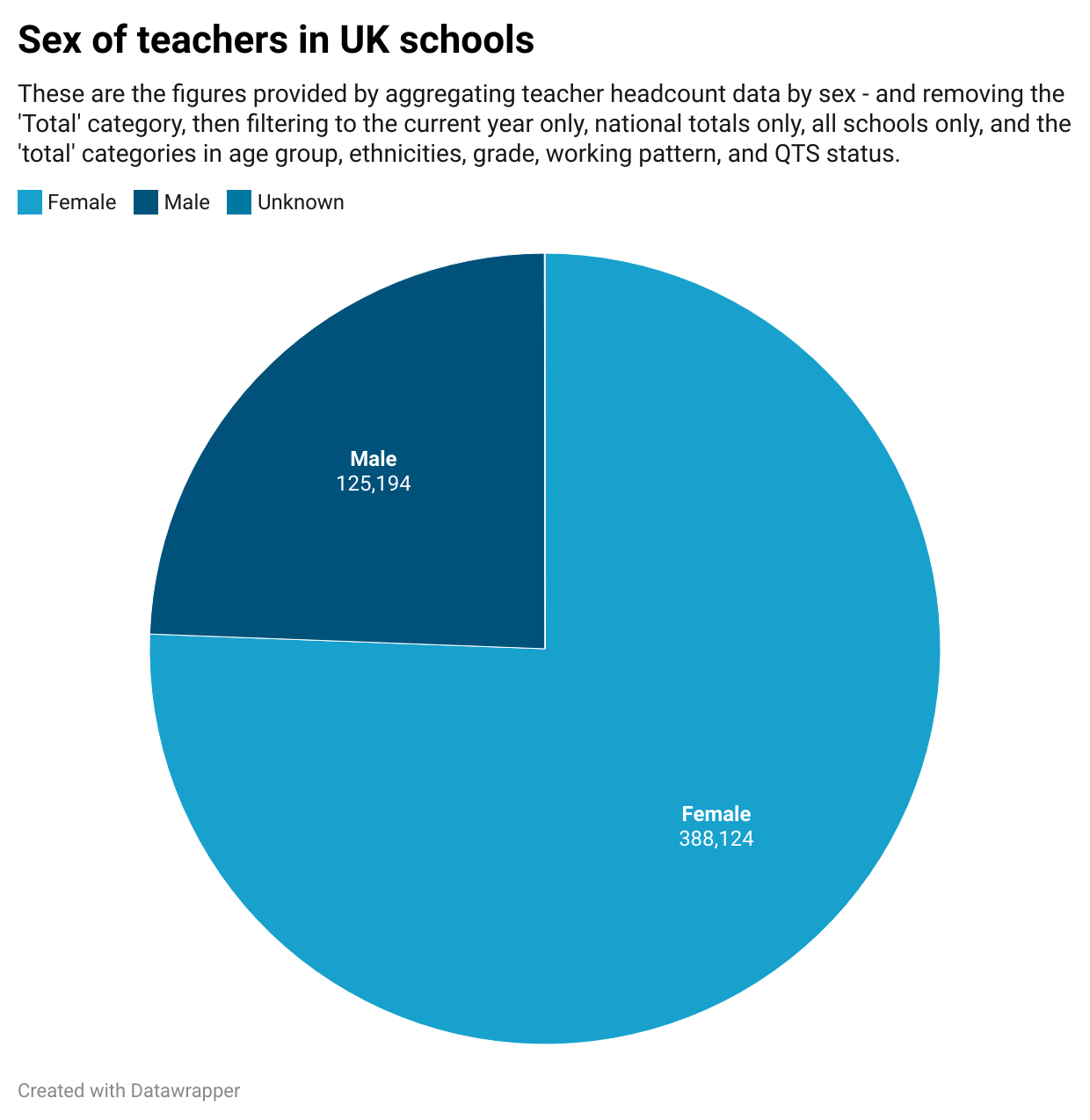 Look at the following chart showing the gender of teachers in UK schools, based on data on teacher headcounts. Notice anything wrong? (There are at least two problems)