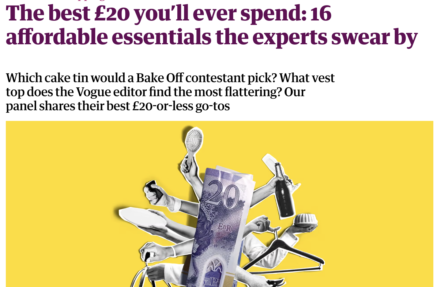 The Guardian feature The best £20 you’ll ever spend: 16 affordable essentials the experts swear by provides a good example of the diversity of expertise journalists draw on. Writing in the newspaper’s Inside Saturday newsletter, Daisy Schofield explained how she identified sources for the piece: