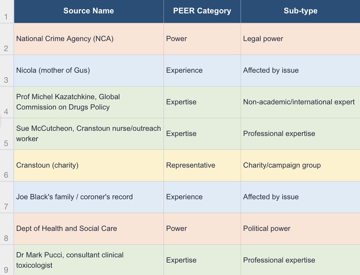 Making each type of source explicit allows us to think about what those roles really mean — and identify less obvious ideas for sources with power, expertise, experience or representative qualities.