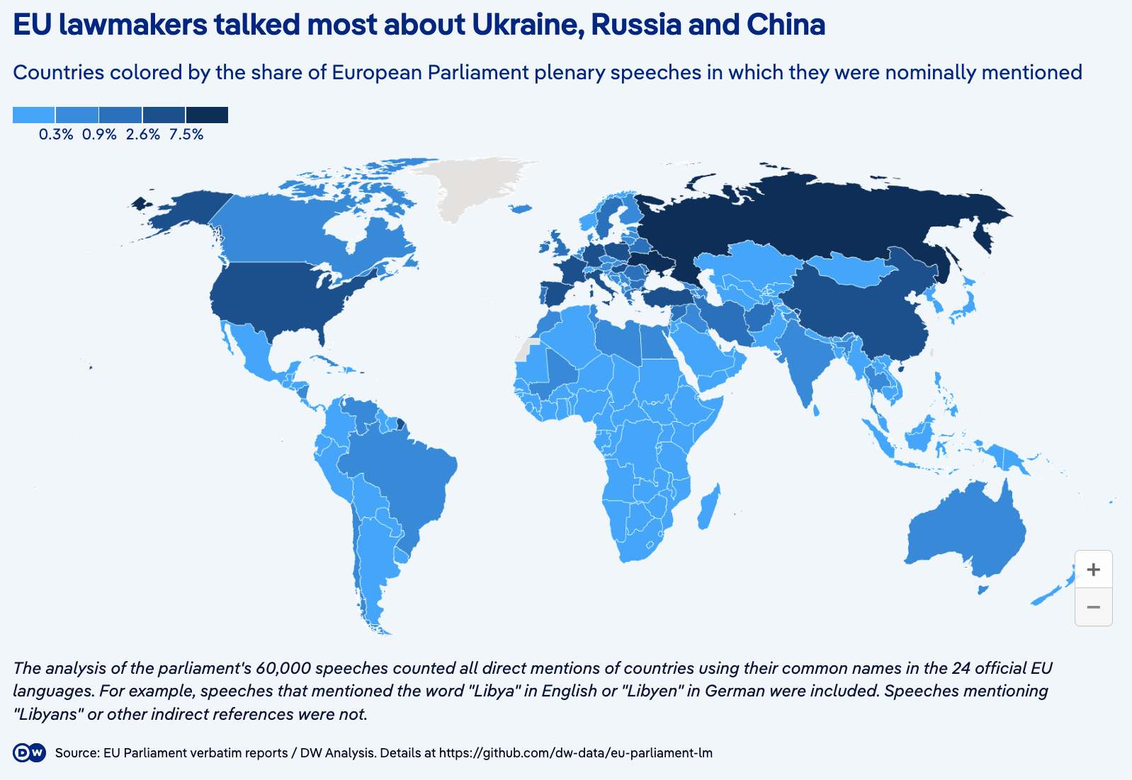 dw_rankingmap ← Previous Next → DW chose a choropleth map to compare countries by their mentions – this is probably a less effective method than a bar chart.