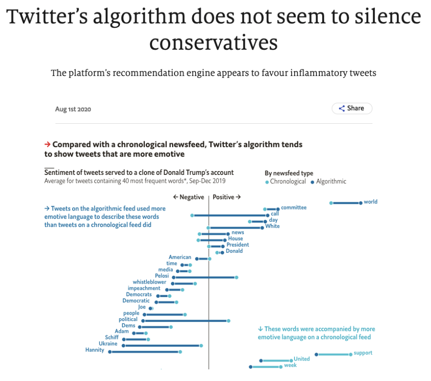 economist-variation ← Previous Next → The Economist used a lollipop chart to show the variation between chronological and algorithmic newsfeeds