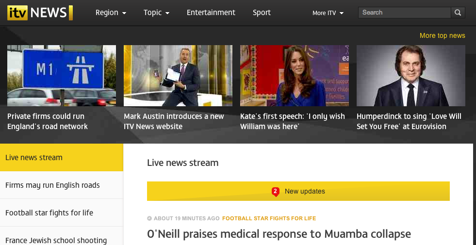 The relaunched ITV website