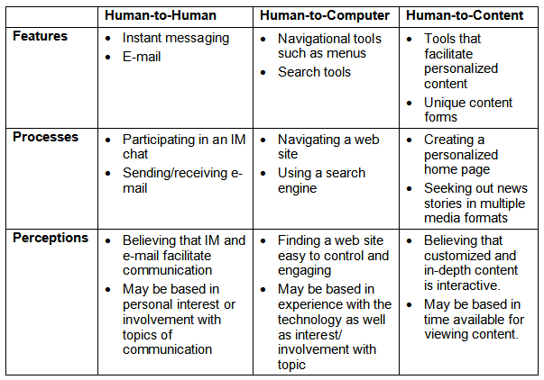 McMillan Interactivity ← Previous Next → Different understandings of Interactivity, according to a 2005 Journal of Interactive Advertising article written by Sally J. McMillan.