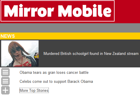 Mirror’s mobile site at 8.53am on Nov 5 2008