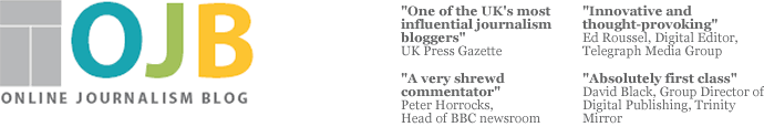 Comment, analysis and links covering online journalism and online news, citizen journalism, blogging, vlogging, photoblogging, podcasts, vodcasts, interactive storytelling, publishing, Computer Assisted Reporting, User Generated Content, searching and all things internet.
