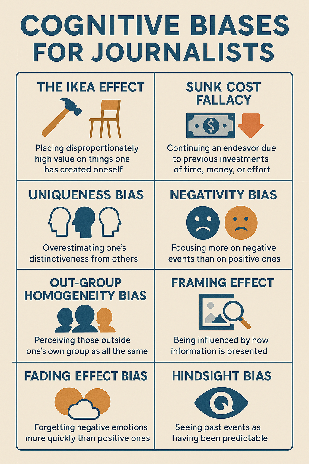 So if you were thinking “this doesn’t apply to me”, read on for a guide to some of the cognitive biases likely to affect journalists — from being manipulated by sources to being bad editors of our own copy — and what to do to tackle them.