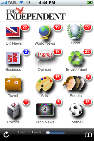 The Independent’s iPhone app works much like an RSS reader